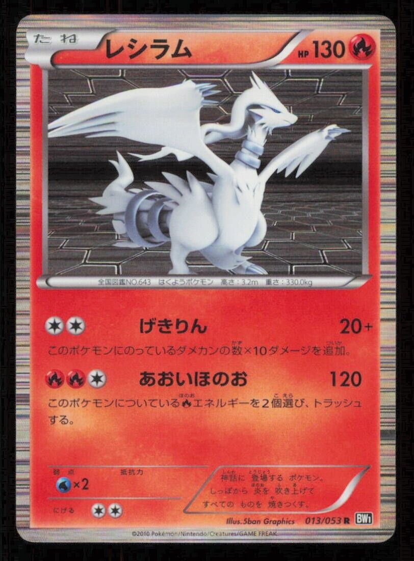 RESHIRAM 013/053 R POKEMON CARD JAPANESE BW1 BLACK COLLECTION HOLO RARE LP