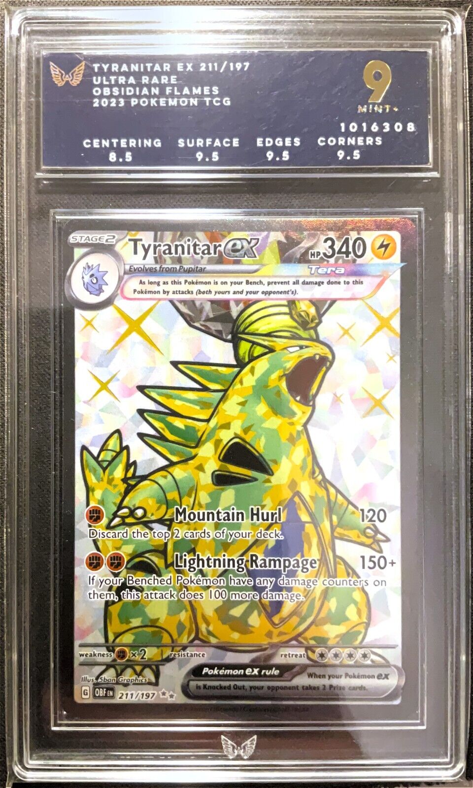 Tyranitar ex SV03: Obsidian Flames 211/197 Ark 9 MINT + GRADED POKEMON CARD